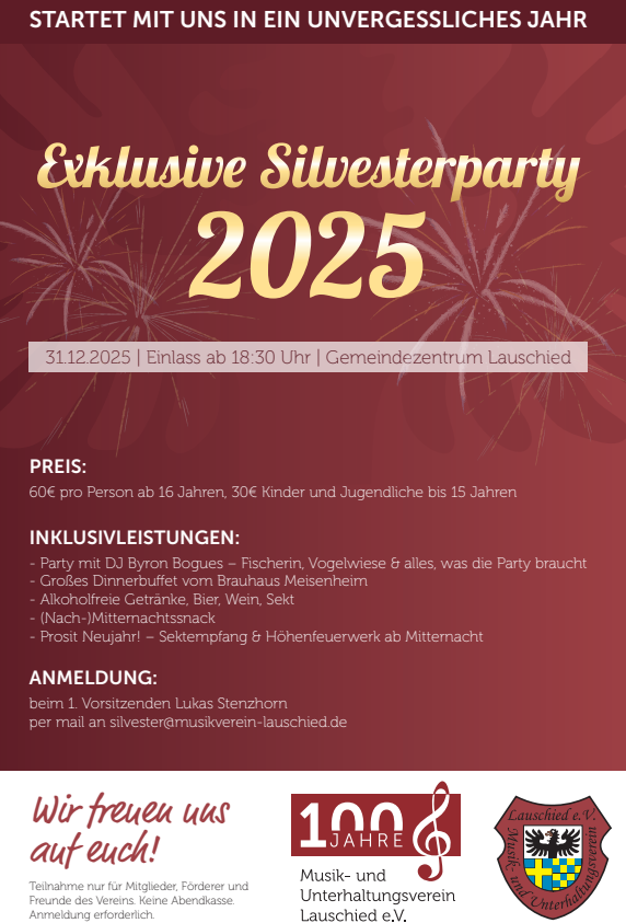 Der Musik- und Unterhaltungsverein Lauschied e.V. heißt Sie recht herzlich auf seiner Internetseite willkommen
